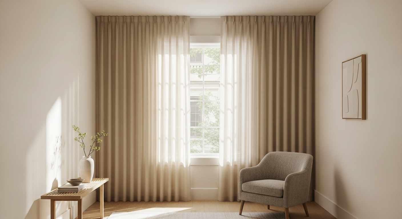 Pasang tiang gorden sedekat mungkin dengan langit-langit (bukan tepat di atas bingkai jendela). Trik ini membuat jendela terlihat lebih besar dan secara visual "menarik" langit-langit ke atas, memberikan kesan plafon tinggi.