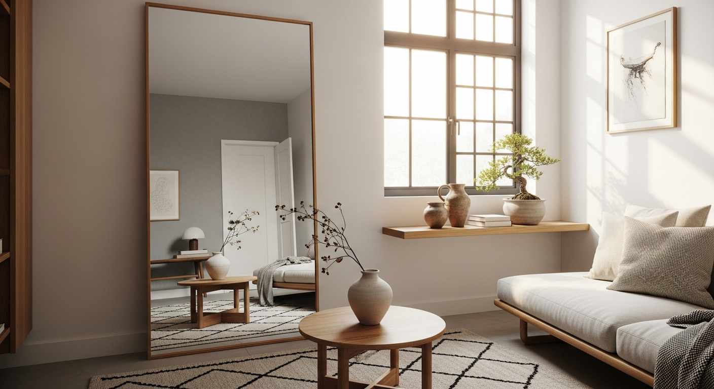 Cermin adalah alat paling ampuh untuk menciptakan ilusi ruang ganda. Letakkan cermin besar di dinding yang berhadapan dengan jendela atau sumber cahaya untuk memantulkan pemandangan dan cahaya, sehingga ruangan tampak dua kali lebih besar.