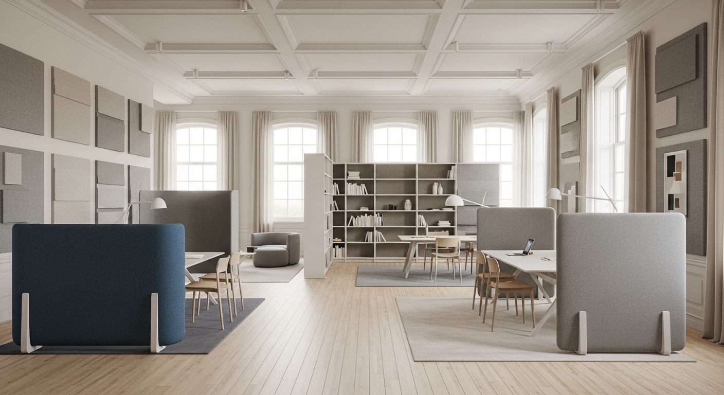 Bagi yang tinggal di ruang terbuka (open-plan), masalah kebisingan sering muncul. Solusinya adalah menggunakan panel akustik dekoratif atau membuat "zonasi" dengan karpet, rak buku tinggi, atau sekat portabel.