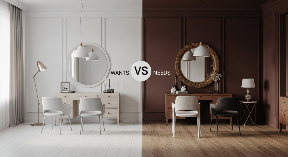 Saat merencanakan ruang kerja, penting untuk membedakan antara yang Anda inginkan (estetika) dan yang Anda butuhkan (fungsionalitas).