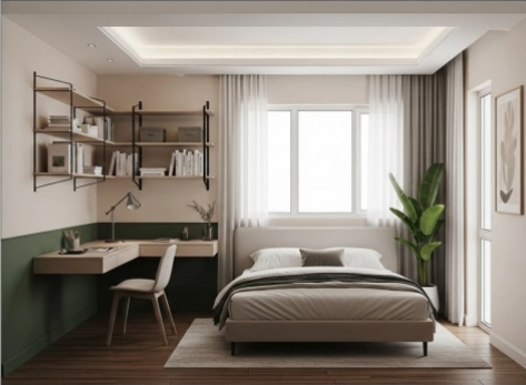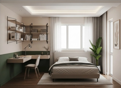 Gunakan Penyimpanan Tertutup: Manfaatkan rak dinding atau lemari dengan pintu untuk menyimpan barang-barang kecil agar tidak terlihat menumpuk.